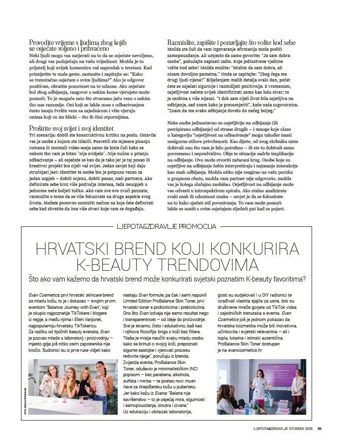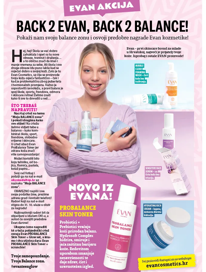 Ovdje ćete pronaći sve što vas zanima o Evan Cosmetics – od najnovijih kampanja, objava za medije, do zanimljivosti iz backstagea. Naš tim voli surađivati s novinarima, influencerima i kreativcima kako bismo zajedno stvarali priče koje inspiriraju i mijenjaju svijet njege kože mladih.