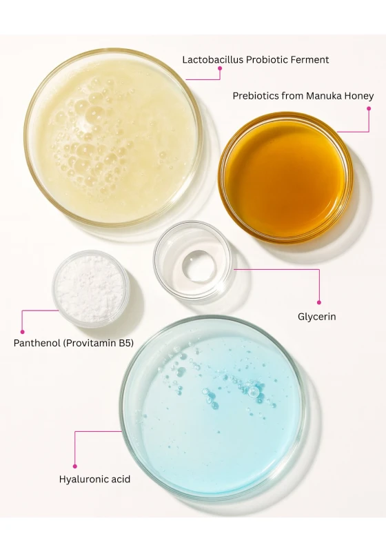Jedinstveni spoj probiotika i prebiotika + Hydrosoft kompleks za svjež, hidratiziran i uravnotežen izgled kože.